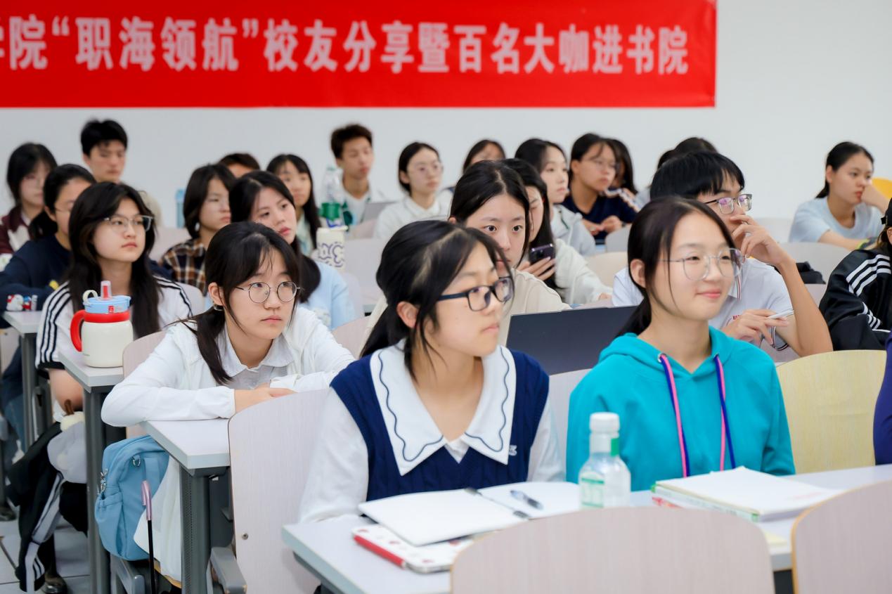 此外,行政楼大厅内的校友茶歇交流活动同步进行,各界校友畅叙情谊、交流心得,气氛温馨融洽。下午4时,“职海领航”校友进书院活动在综合教学楼301开展,多位优秀校友结合自身职业发展经验,为在校生分享职业规划经验,助力成长发展。2009届校友常广思、2015届校友洛松热丁、2025届校友白龙霄结合亲身成长、行业经历,分享了在校期间的生涯规划与心得体会。