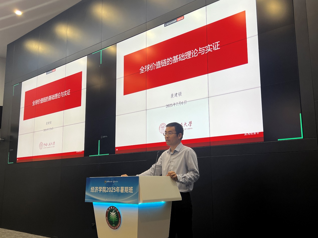 开幕式后,本届暑期学术研修班第一场报告如期进行,本次报告有幸邀请到中国人民大学裴建锁教授带来题为“全球价值链的基础理论与实证”的学术报告。