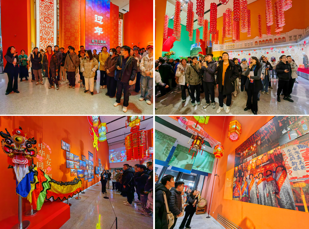 第一部分研学观展。春节作为我国受众范围最广的民俗实践活动,2024年12月成功入选联合国人类非物质文化遗产名录。本次党建研学围绕“过年-春节主题展”和“气象万千-中国非遗保护实践”展开。中国非遗馆学术部主任、春节主题展策展团队主要成员孟晓雪,结合馆内南北地域非遗项目和实物,以冬到春时间线索,为学生讲述了中国人庆祝传统新年的社会实践。师生通过主题化、系统化、场景化学习和体验,观摩了涉及覆盖全国31个省(自治区、直辖市)、新疆生产建设兵团和港澳台地区共计120余项与春节相关的非物质文化遗产代表性项目。中国非遗馆专业讲解员谷梁为师生进行了“气象万千-中国非遗保护实践展”介绍,帮助师生系统了解了中国共产党领导下的国家非遗保护发展历程、保护成就和中国文化(非遗)的国际影响力。专家们一个半小时的精彩讲授给师生留下深刻印象,极大增强师生文化自觉与自信。