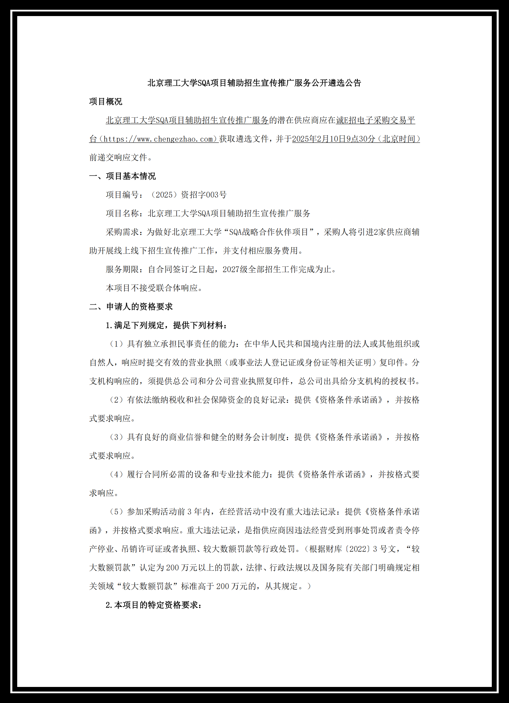 BETWAY必威SQA项目辅助招生宣传推广服务公开遴选公告