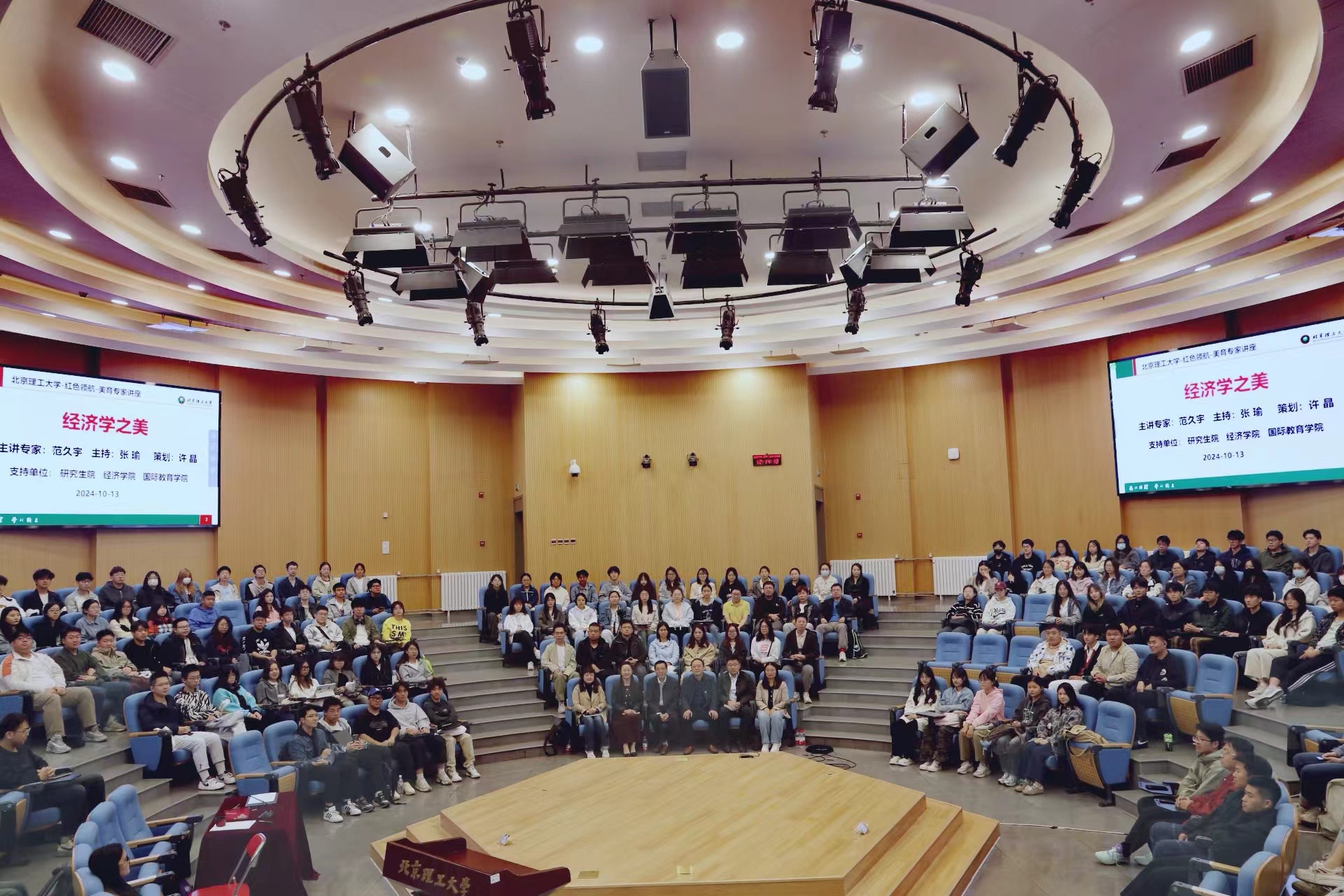 讲座中,范久宇以深厚的经济学科基础、广博的美学素养及幽默生动的语言围绕其著作《经济学之美》的总纲,为同学深刻阐述深入剖析了经济学这座“精美的大厦”;并结合党的二十届三中全会中有关经济建设的内容,重点围绕“普惠、和谐、公平、特色”四个关键词,解读了中国的经济建设中体现出的“经济学美之所在”。整场讲座既带给了学生对国家经济政策更深入的理解,也给大家打开了一扇新视角的大门,令学生受益非浅。范久宇其平和的讲演风格,丰富的引经据典,鲜活的实证案例获得学生掌声与欢迎。