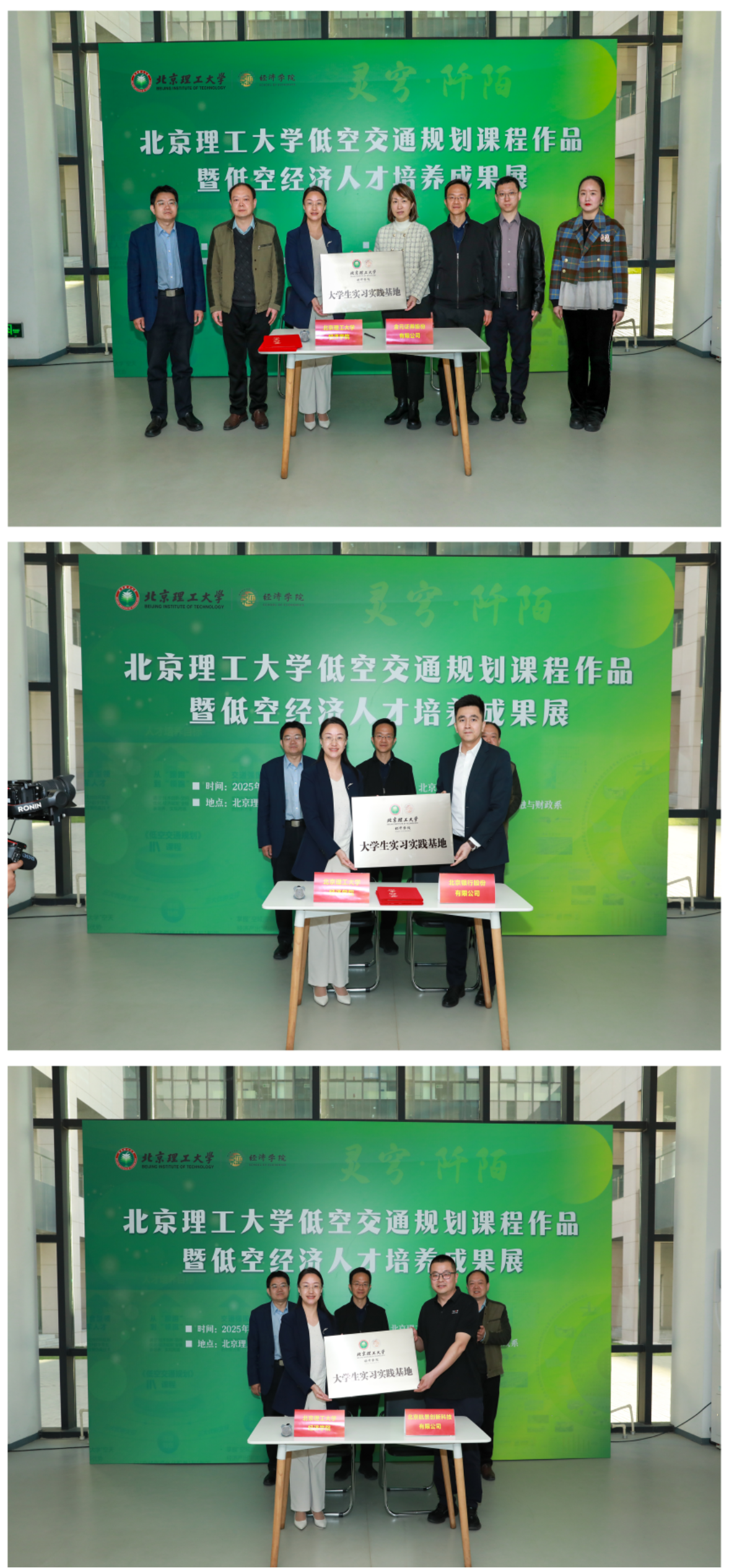 开幕式结束后,全体嘉宾与师生在展览签名墙前合影留念,并纷纷在背景板上写下对低空经济发展的寄语,表达对未来的期待。