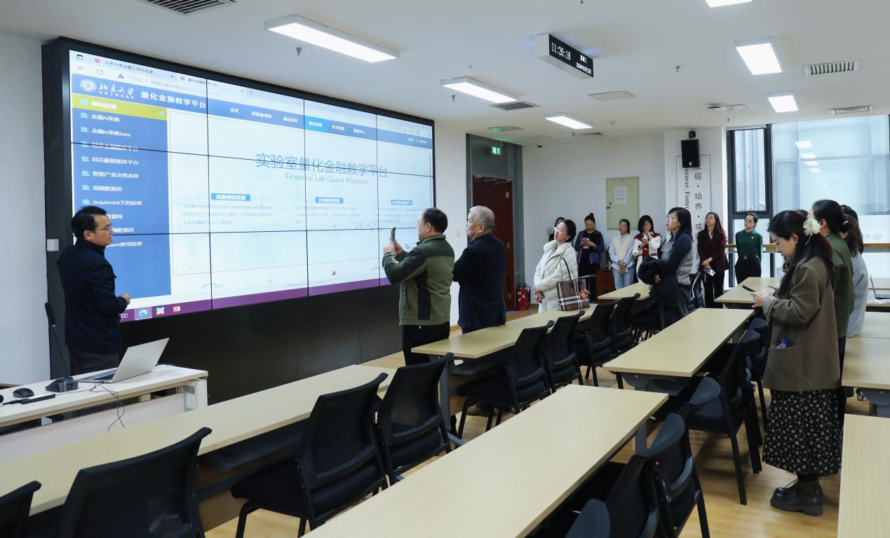 座谈结束后,与会人员共同参观必威西汉姆联金融科技实验室,北京大学必威西汉姆联副院长赵留彦同志介绍了实验室建设背景、金融数据和实验系统在科研与教学领域的应用等,双方就金融科技学科发展、AI在实验教学中的应用、科研协同创新等展开深入交流。