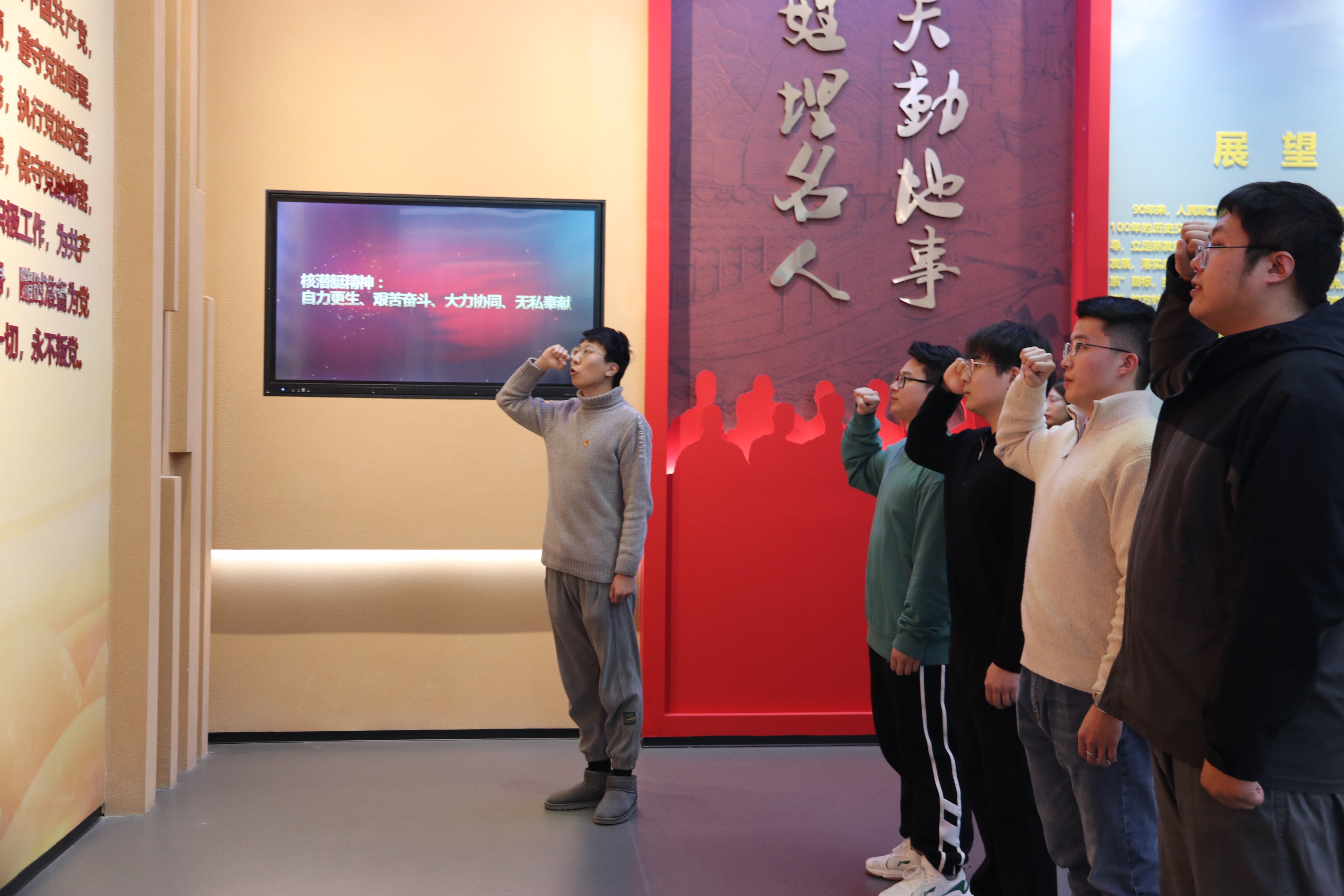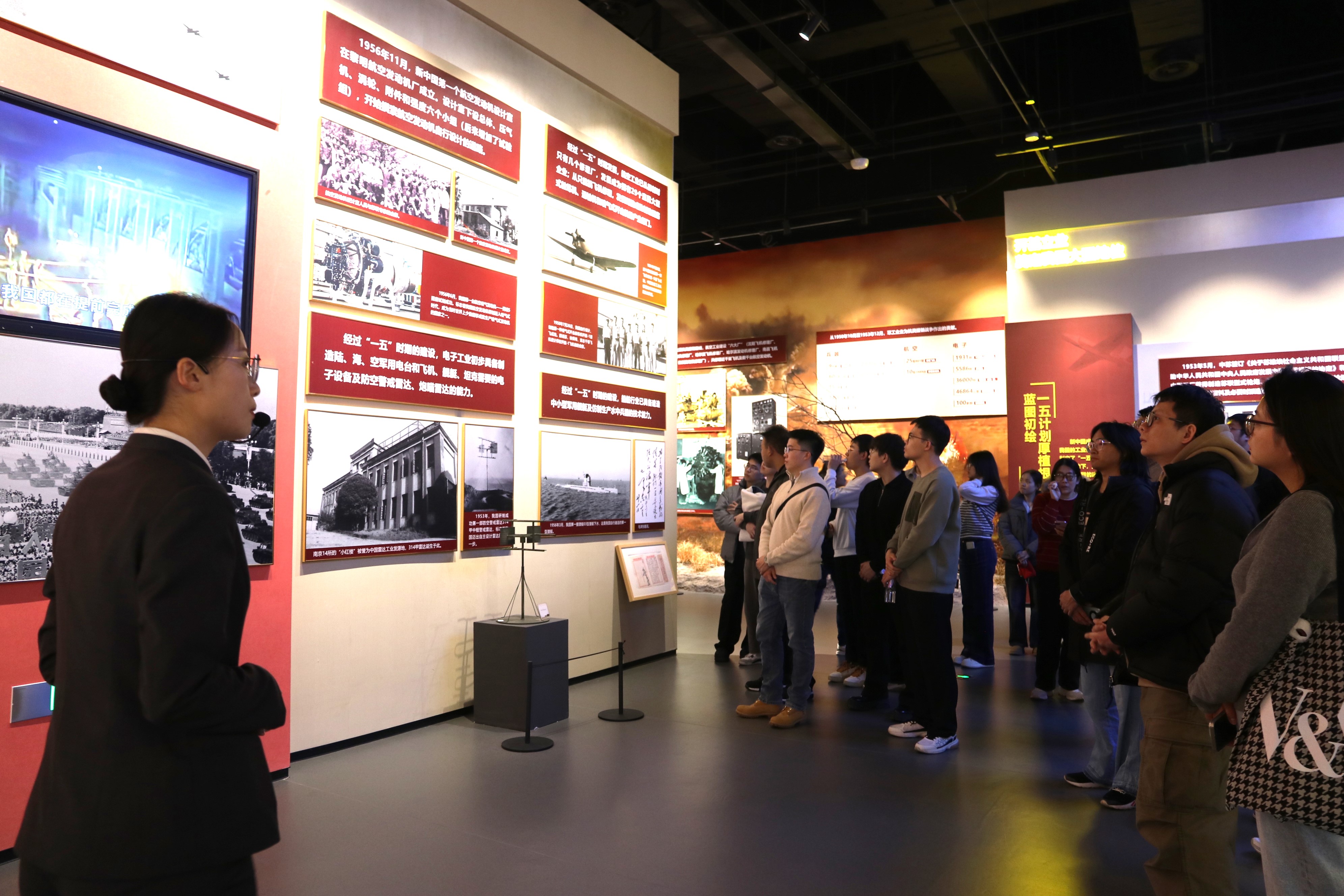 随后,师生共同参观了位于文博中心的“挺起民族的脊梁——党领导的人民军工”展馆。该展馆是国内首个反映人民军工全行业发展历程的展馆,生动展现了中国共产党领导下人民军工发展壮大的光辉历程,以及我国国防科技事业取得的辉煌成就。同学们对国防科技事业的发展历程和取得的辉煌成就感到无比自豪,也更加坚定了为国防事业贡献力量的决心。丰富的红色资源为铸魂育人提供了鲜活素材,让红色教育更加接地气、有生气。