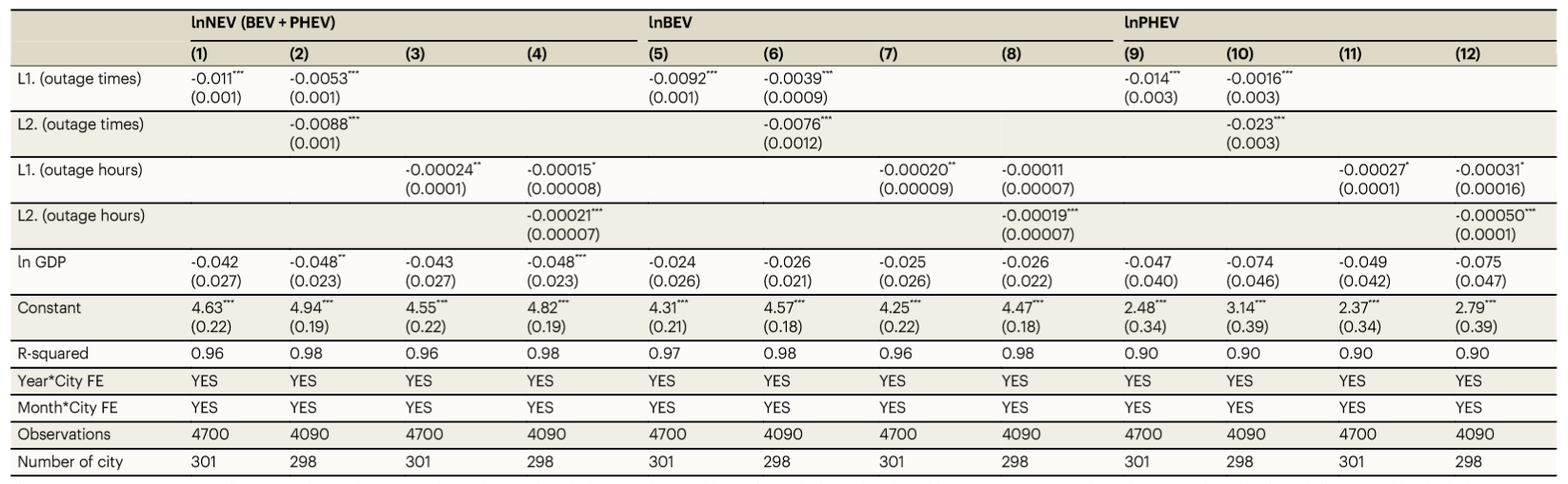 表1:电力中断与新能源汽车销量的回归结果